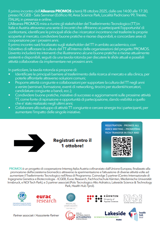 presso l’ICGEB – Sala Seminari (Edificio W, Area Science Park, Località Padriciano 99, Trieste,